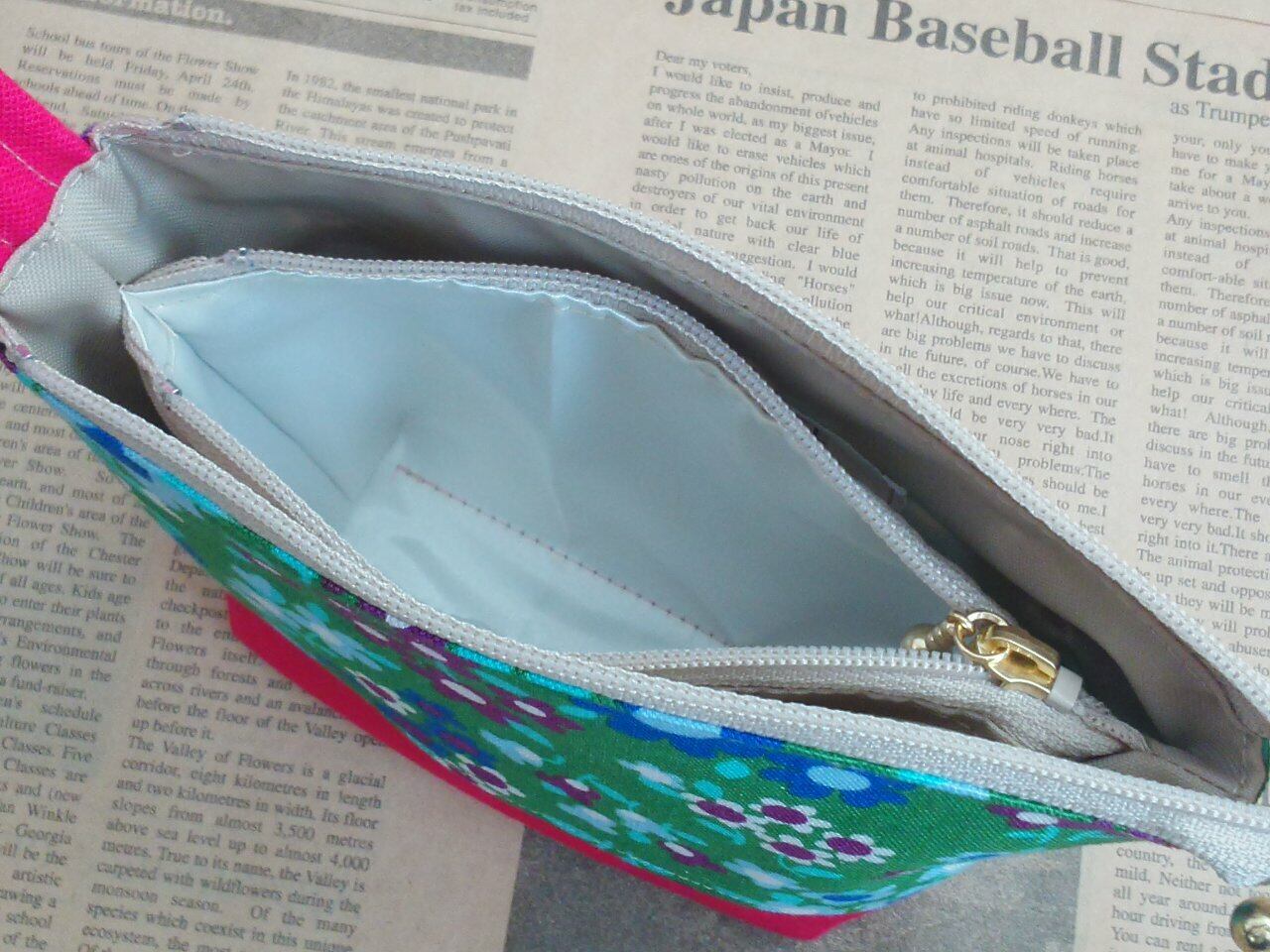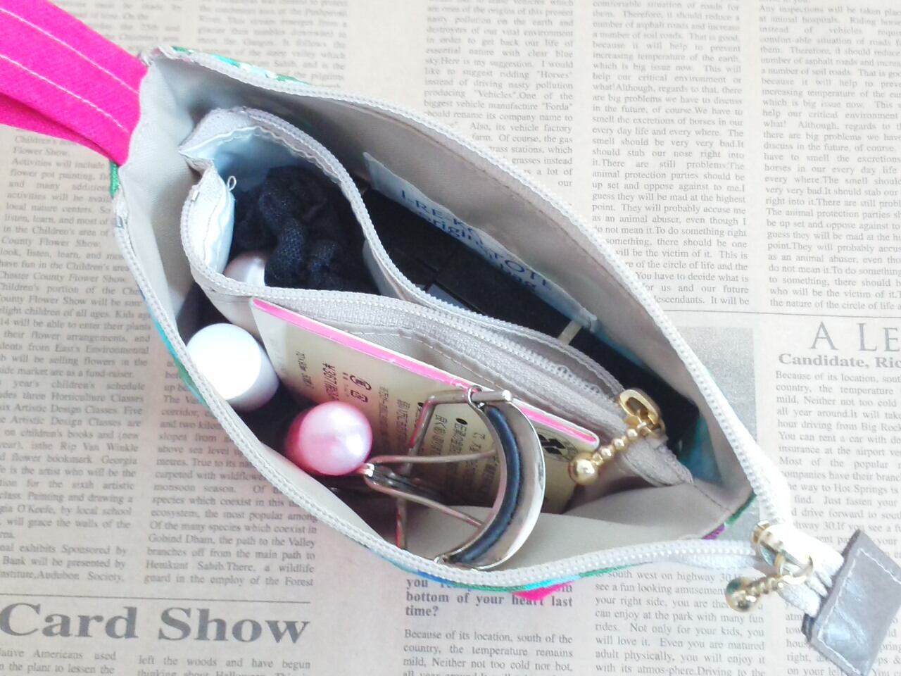 ポーチの中に、入れ子のように小さなポーチをつけています。