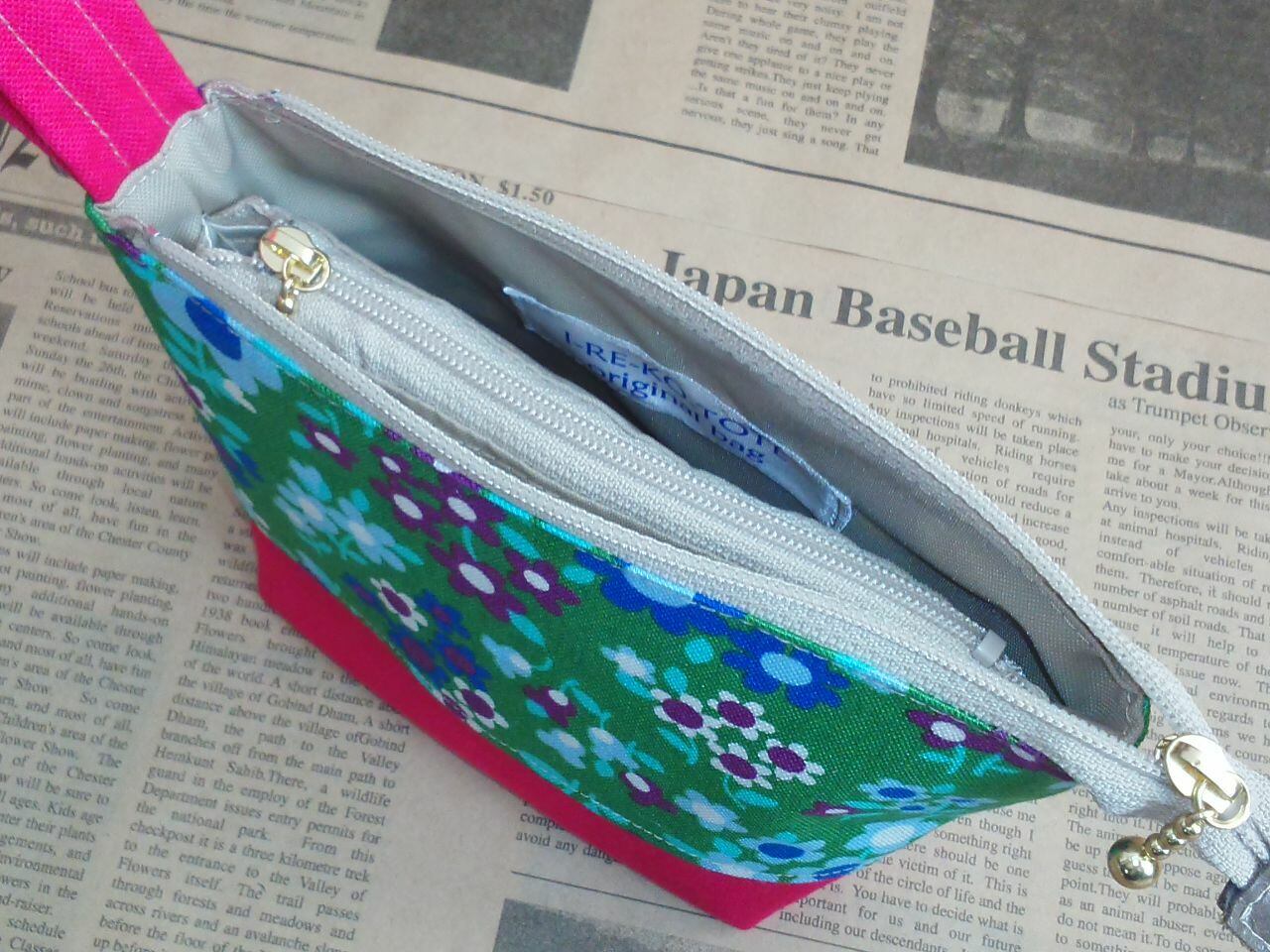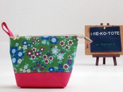 整頓できるポーチ IREKOTOTE 【仕切り付き】【ポーチ】 フラワー 緑×ピンク